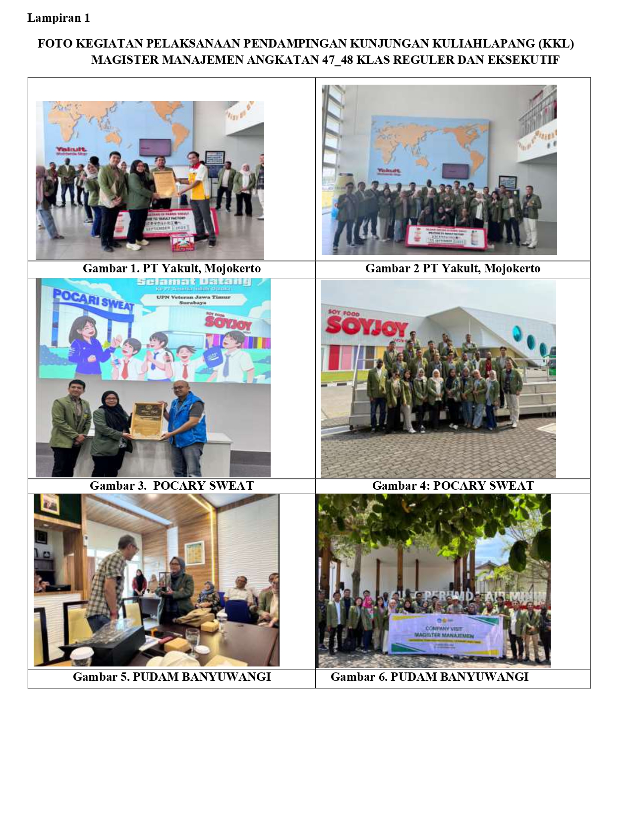 Kuliah kerja Lapang (KKL) atau disebut juga kunjungan industri bertujuan untuk menghubungkan teori dengan praktek di mana mahasiswa, dalam hal ini program studi Magister Managemen, dapat melihat secara langsung bagaimana teori yang dipelajari di kelas diterapkan dalam praktik di dunia nyata. Kegiatan ini diharapkan dapat membantu para mahasiswa memahami konsep-konsep yang mungkin sulit dipahami hanya melalui pembelajaran di kelas. Selain itu kegiatan Kunjungan Kuliah Lapang (KKL) diharapkan dapat menambah pengetahuan dan wawasan: Kunjungan ini memberikan kesempatan kepada mahasiswa untuk mendapatkan informasi terbaru dan mendalam tentang industri atau sektor tertentu. Mahasiswa dapat belajar tentang teknologi, proses, dan tren terbaru yang relevan dengan bidang studi mereka.
